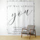 Transform your wedding venue with this romantic and minimalist custom tapestry, perfect for use as a ceremony backdrop, head table decor, or a photo booth background. Featuring the timeless sentiment "IT WAS ALWAYS you" in a sophisticated blend of classic serif and oversized, sweeping script typography.