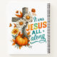 Peaceful, colourful design featuring a fall / autumn scene with a pumpkin, wooden cross, butterflies, and fall flowers. The colourful inspirational text reads: "It was Jesus all along". This design is available on a wide variety of products.