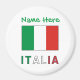 Round magnet shows the flag of Italy, or in Italian, Bandiera Italiana. Below, the word ITALIA, in the red, white and green stripes of il Tricolore. Above, a place for your name in green letters. Create a personalised touch for yourself or add someone else's name for a customised gift. Perfect for an Italian family reunion, travel group, or club.