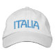 White baseball cap with ITALIA or ITALY in custom blue embroidery. Italian heritage gift, Italy pride hat, Italian baseball cap, gift for Italian family, Italian American gift, Italy travel hat, Italian pride apparel.