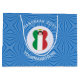 Large gift bag features our angel wearing the flag of Italy for holiday gift decorating or Hanukkah decor. The Italian Flag angel is found inside a white circular fractal of squiggly squares. The background is a blue fractal of squiggly squares. Add your own text or personalise with a name and the year. The flag is three vertical stripes of red, white, and green. It is, sometimes, called IL TRICOLORE.