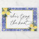 This Mediterranean Lemon Bridal Shower Champagne label features a unique hand painted dark blue and yellow tile clipart with watercolor lemons! With an accent of modern typography this French Amalfi Coast inspired theme is perfect for any season!