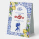 Italian Mosaic Blue Tile & Lemons Bridal Shower Kisses Game Table Tent Sign