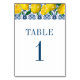 Italian Blue Tile Watercolor Lemon Wedding Table Number
