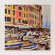 Artsy coastal scenic jigsaw puzzles for adults designed with an artistic image of Portofino Italy with European flair and colorful buildings and boats.
