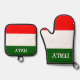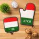 Italian Flag Design Oven Mitt and Pot Holder Set with customisable text.