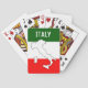 Classic playing cards with Italian flag design. The word Italy is also on the design above an outline of the Italian map. Poker size cards (2.5" x 3.5") made with smooth easy-to-shuffle card stock. Ideal for a fun night at home with the family or the weekly poker games! You can make a Scopa deck out of this standard card deck by removing all jacks, queens, kings and jokers. But, since this is not an Italian card deck, it is not suitable for tresette or briscola.