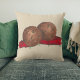 Decorative throw pillow features an original marker illustration of a pair of Italian meatballs in marinara sauce.