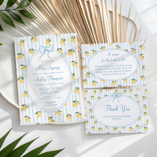 Bring Mediterranean charm to your table with these Amalfi-inspired lemon paper plates. Decorated with watercolor lemons, airy blue and white stripes, and a dainty bow frame, these plates are perfect for bridal showers, summer parties, or engagement brunches. Pair with matching napkins and cups for a sunny, coordinated look.