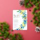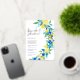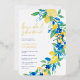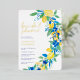 Elegant casual script bridal shower with a modern calligraphy typography and Italian style lemons fruits, greenery and blue floral watercolor wreath with real gold foil.