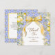 The front of the card showcases elegant coquette and citrus lemons, often depicted with subtle gold accents to enhance the celebratory feel. Softly painted Mediterranean Blue Tile, in hues complementing the overall design, are scattered around the bubbly imagery, adding a touch of romantic elegance. The phrase "Thank You" is presented in a graceful script font, conveying sincerity and appreciation. The overall design evokes a sense of joyful celebration and refined taste, perfectly aligning with a stylish bridal shower.