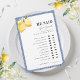 Enjoy your bridal shower with this "He Said She Said" game, featuring Italian white lemon floral, blue mediterranean tile, 10 custom questions and personalised back. Easily add your own details by clicking on the "personalise" option.
