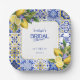 Italian Mosaic Blue Tile Lemons Bridal Shower Paper Plate