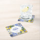 These unique square paper coasters are the perfect way to infuse your bridal shower, engagement party, or summer celebration with authentic Italian flair and irresistible summer vibes. The intricate blue tile pattern evokes the timeless beauty of the Amalfi Coast or a serene Tuscan villa, while the refreshing lemons add a cheerful, celebratory pop of colour. The classic white round design provides a striking contrast against the square coaster, making it a beautiful focal point for your guests' beverages.