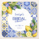 Italian Mosaic Blue Tile Lemons Bridal Shower Square Paper Coaster
