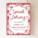🍕 Welcome guests with a slice of fun and charm using this Italian-inspired coquette baby shower welcome sign! Featuring hand-drawn doodles of pizza slices, pacifiers, bottles, bows, and baby essentials, this whimsical design sets a playful tone for your celebration. With its red-and-white striped border and sketch-style graphics, this gender-neutral poster is perfect for pizza lovers and anyone hosting a unique, food-themed baby shower. Whether for a baby boy, girl, or surprise, this sign brings a warm and joyful benvenuto to all your guests!🎉🍕