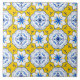 This is a lovely yellow blue and white patterned tile. It is an Italian style ceramic tile. I could definitely see this tile in a kitchen perhaps used as a border or intermittent tiling. I can also see this tile on a staircase. There are many things you could use this tile for both inside and outside your home.