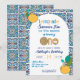 Celebrate your little sweetie’s 1st birthday with this Italian summer inspired lemonade party invitation designed for outdoor fun. Featuring hand drawn lemons, a lemon slice as the “O” in ONE, and a vibrant Italian tile-inspired yellow and blue background, this cute first birthday invitation brings together all the sunshine of an Amalfi coast picnic. The back includes pink and yellow lemonade pitchers to set the tone for a playful, casual gathering. Perfect for a girl’s summer birthday, this template is ideal for lemonade birthday invitations, lemon themed parties, backyard picnics, lemon theme luncheon, or just a casual summer birthday party with close family and friends, this invite ties it all together.