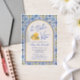 Celebrate the bride to be with a trendy "La Dolce Vita" themed bridal shower vellum invitation featuring a chic arch frame and Italian tile patterns in blue, white, and yellow with citrus lemon gelato illustrations, reminding you of a romantic summer in the Mediterranean. On its own or as a semi-transparent overlay with a sweet photo, this vellum paper is a great way to create an elegant and unique invitation for your special day. Feel free to message me if you need any help with customisation.