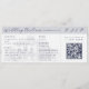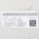 This wedding invitation is designed to look like a plane ticket. It features a semi-opaque illustration of an Italian villa, which you can replace with an image of the destination wedding venue. Elegant dark blue lettering in serif and script fonts lay out the bride and groom names, and details of the wedding, including the location, date, and a QR code to RSVP.