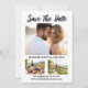 A photo template has watercolor pictures of an italian Tuscan vineyard and a charcuterie board with wine and cheese below it. This modern and elegant design has clean lines and is fully editable. Replace the pictures with additional photographs of the bridal couple, if preferred. Or, leave it as is. This timeless design is perfect for a romantic wedding in Tuscany, Italy.