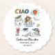 These Italian-inspired “Ciao” coasters add a relaxed, Mediterranean touch to your bar and lounge areas. Featuring playful hand-drawn seaside illustrations—sunshine, a colorful coastal village, wine, and easy summer details—the design feels artful, cheerful, and effortlessly chic. Perfect for destination weddings, welcome parties, or Italian-themed celebrations, these coasters protect surfaces while adding a thoughtful, cohesive detail guests will notice and appreciate.