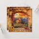 Artistic Thanksgiving dinner party invitation with a colourful painting of an Italian style landscape framed by a Roman arch and wine and grapes with a sunflower.
