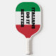 Italians do it better funny pickleball paddle racket. Create unique sports paddles for player, fan, coach, team, mum, dad, friend, husband, wife, kids etc. Personalise with your own name monogram initials or funny quote. Professional quality game rackets for men, women and children. Background colour can be changed too. Double sided print. Custom trim colour. Cover optional. Flag of Italy design.