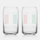 Personalised set of two can glasses featuring the red, white and green Italian flag or Il Tricolore. Below is the word ITALY, also in the Italian tricolor. Above is a place for a name, in green letters. Each glass can have a different name, if you wish. Or, create a personalised gift by adding some else's name. Each glass can have a different name. Great for family reunions, travel groups, and clubs. Wonderful housewarming gift, too.