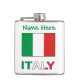 This flask features the red, white and green Italian flag or Il Tricolore. Below is the word ITALY, also in the Italian tricolor. Above is a place for a name, in green letters, to add a customised look. Or, create a personalised gift by adding some else's name. Great to take to a family reunion, travel group, or club.