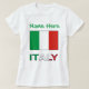 Personalised women's short sleeve T-shirt features the green, white and red Italian flag or Il Tricolore. Below is the word ITALY, also in the Italian tricolor. Above is a place for your name to add a customised look. Or, create a personalised gift by adding some else's name. Terrific for family reunions, travel groups, and clubs.
