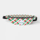 Personalised fanny pack features the Italian flag, is seen here with the word ITALY under the flag. Design is tiled for artistic effect. A white, fractal of squiggly squares holds a spot for your name, in green letters, for a personalised touch. If you wish to create a customised gift, add someone else's name. Great for family reunions, travel groups, and clubs.