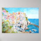 coastal area painting,fishing village,blue sky,blue sea,buildings,italy,italy village,colorandcolor,colour and colour,watercolor arts,landscape arts,landscape painting,summer arts,summer painting,italian riviera coastline,europe arts,italy arts,for her,mother gift idea