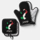 Italy Design Oven Mitt and Pot Holder Set with customisable background colour and text.