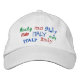 The design was easy to do with a number of options both the hat style, color and so forth. These aren't some printed letters, these are the real deal stitching. The two hats arrived quickly. I've used Zazzle in the past for shirts a number of times and this is the first time for a hat. Zazzle is absolutes the best in every respect; customer service, product selection and results. The embroidery was just right. My artwork was turned into a professional look thanks to Zazzle.