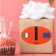 Snazz up a car, a binder, a dorm room with this European-style oval bumper sticker. The design is very clean: Italian and European Union flags, with a simple letter "I". Below in small letters is the word Italy. Show your heritage or where you have travelled.