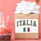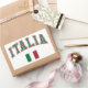 This item has ITALY in a collegiate style in an arc over the Italian flag. The design uses the Italian colours of red, white and green. The flag of Italy is a tricolour featuring three equally sized vertical pales of green, white, and red, with the green at the hoist side. Its current form has been in use since 19 June 1946 and was formally adopted on 1 January 1948.