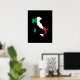The shape of Italy in colours of the Italian flag on a black background. You can move the image around, or decrease or increase the size of the shape of Italy. You can also change the background colour or add text message to personalise.