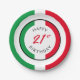 Italy happy birthday paper plate with Italian flag colours red, white, and green. Customise the age to suit your occasion.