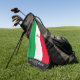 Italy golf towel with Italian flag colours red, white, and green and black trim with bottom name and extra text for a birthday or anything you choose. Perfect gift for Italian golfers. Customise the text for a personalised gift.