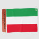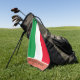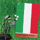 Italy golf towel with Italian flag colours red, white, and green and faux leather bottom with name and extra text for a birthday or anything you choose. Perfect gift for Italian golfers. Customise the text for a personalised gift.