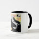 white mug with black handle and exotic black map of Italy and surrounding areas.