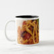 Italy, Positano. Plate of pasta and eggplant. Two-Tone Coffee Mug
