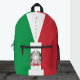 Patriotic Italian backpack featuring Italian Flag & Italy colours with easily customised name. Your perfect school / university bag or simply travel, holiday, sports team backpack for patriots.
