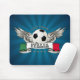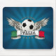 Vintage style mousepad design for Italy national team supporter featuring a soccer ball with wings, the Italian flag and chant - Forza Azzurri - and champion stars.