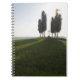 Italy, Tuscany, Cypress Trees in Tuscany with Notebook