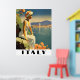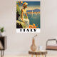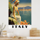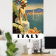 Bring the sun-soaked charm of the Mediterranean into your home with this breathtaking Italy travel poster. This piece of wall art uses a painterly, graphic style to depict a tranquil coastal morning, complete with traditional Italian architecture and the gentle glow of the sun over the water.