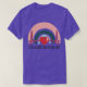 I give wanted to give this a 4 instead of a 5 because these Basic DARK T0shirts run unexpectedly SLIM or Narrow. Which is great if you do not have a potbelly, but I have a paunch. It isn't the shirt's fault that I've got a beer belly. The design and shirt itself is a quality cotton shirt. The color is more of a deep purple, but still a very pretty color. The Basic DARK T-shirts run a bit SLIMMER than the Basic Ts. The neck is a fraction narrower (or seems to be narrower) also. I'm a paunchy middle-aged woman and my neck is 12 inches (31cm) thick and the neckline fell about the same as in the photo of the man, and I had the desire to tug it a bit. So if you're a thick necked man or like loose shirts, be aware these are slimmer shirts. Once I get rid of my lockdown paunch it'll look great. The shirt washed well in cold water with no apparent bleeding. We don't have a dryer, so it hung dry. Did not shrink. Love the colors and the design. The design looks smaller on my shirt than it does on the model on-line. But still, it looks good on the shirt. The printing looks as it does on the model, just the size seems fractionally smaller. Washed garment in cold water, hung dry and design appeared unaffected.