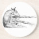 A black and white BIRO illustration of a young foal lying down, then realises it needs to reach an itch on its back leg. By the BIRO Artist ~ Robin Hewitt.