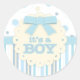 It's a Boy All in Blue Stitches & Bow Baby Shower Classic Round Sticker